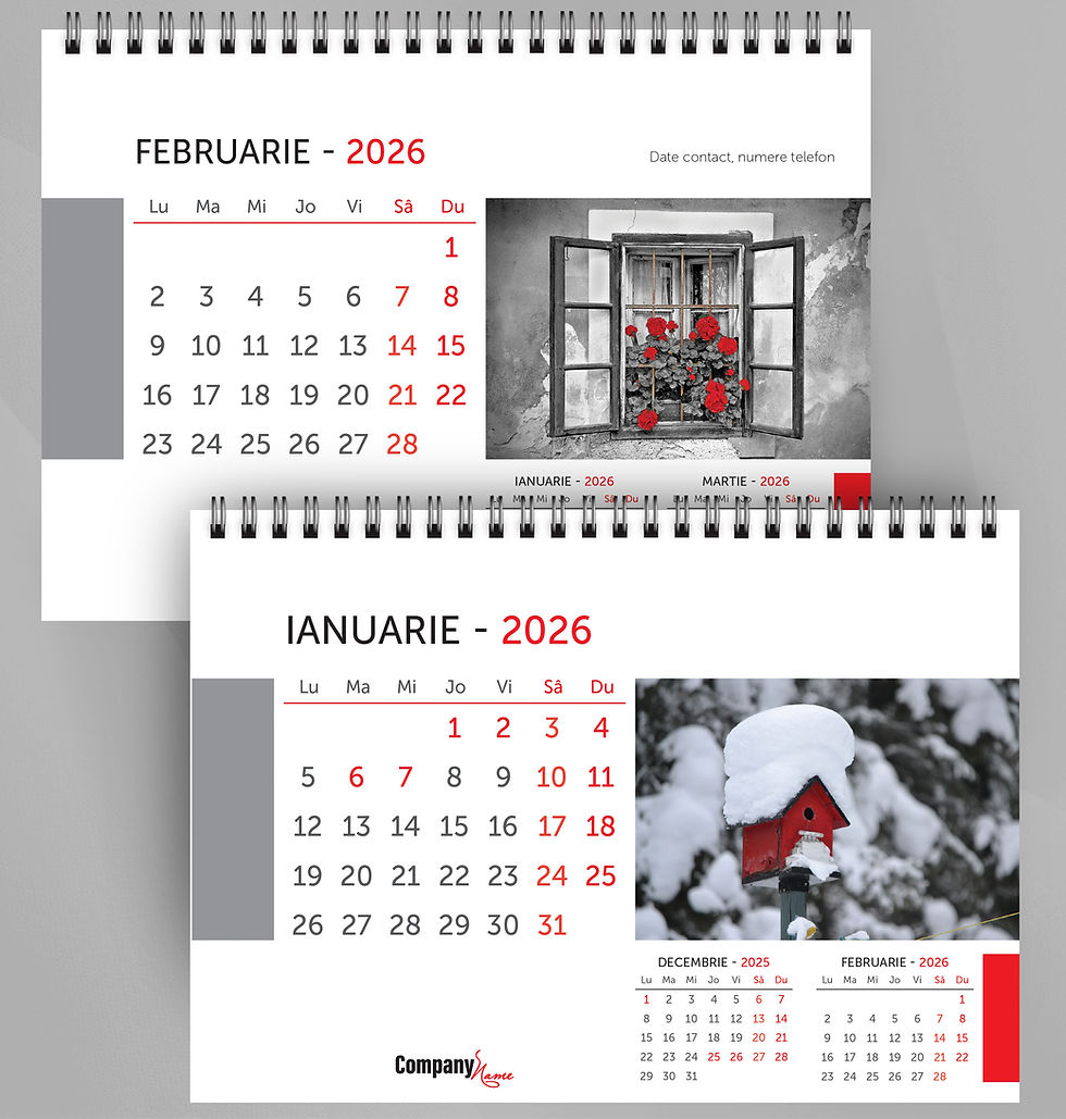 Cand te mai gandesti ca toate cele 13 fotografii care îl ilustreaza îti pot reprezenta compania si domeniul de afaceri, îti dai seama rapid de avantajele pe care le are personalizarea unui astfel de calendar. Ca sa produci impresia scontata, trimite-l într-unul dintre ambalajele noastre speciale si fii sigur ca îti vei atinge obiectivul.